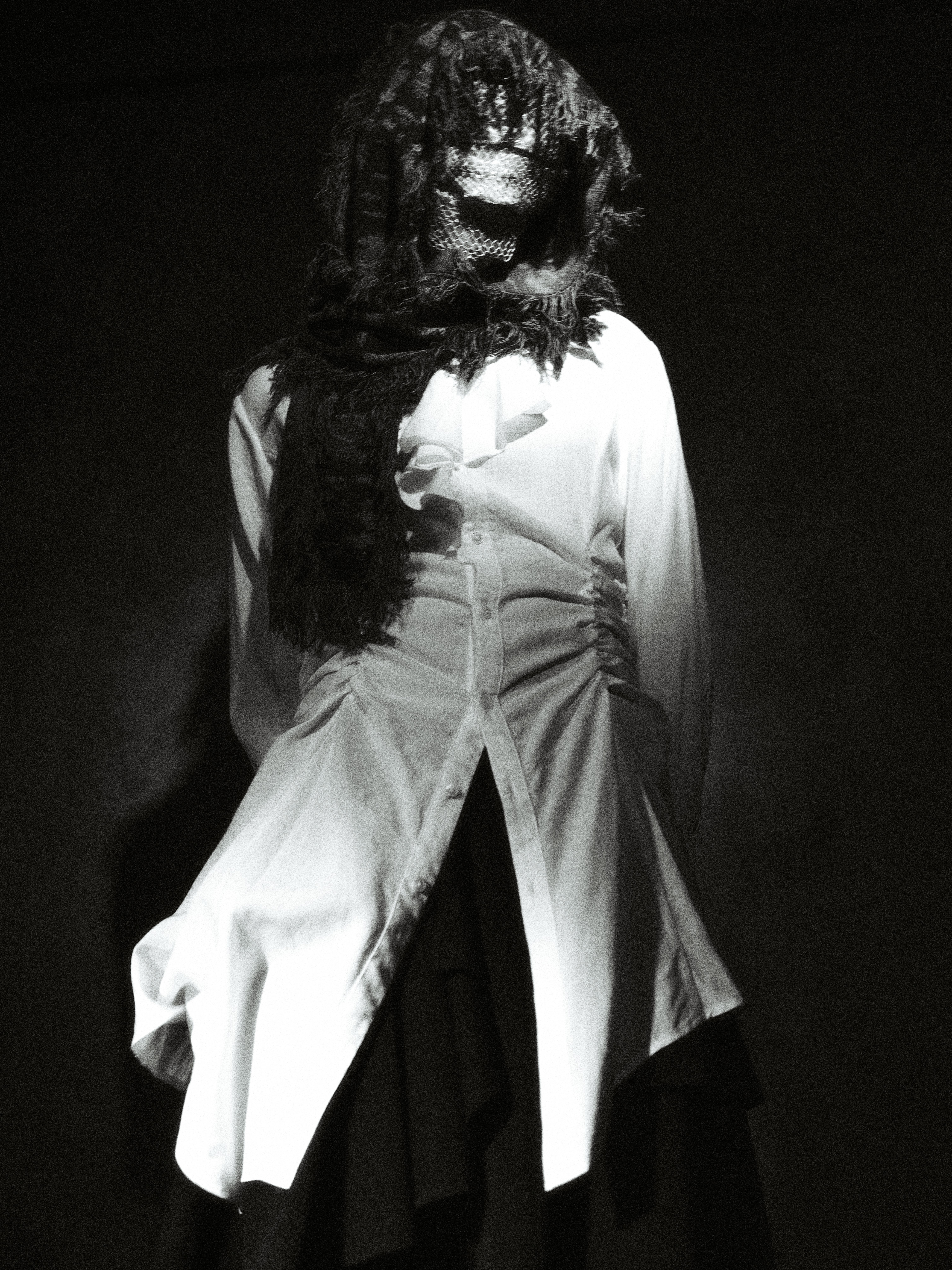 设计语言上,通过内里结构外翻、结绳缠绕、缝迹显露、无序的褶皱、错位的拼接与不对称的骨位,重塑了意外造成的偶然形态,用针线定格,一步步在失序中建立新的美感秩序。